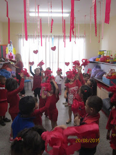 As professoras do Maternal I,Maternal II e Mini Maternal realizaram com as crianças a Festa do Vermelho que teve como objetivo propiciar à criança a visualização, exploração e contato com
